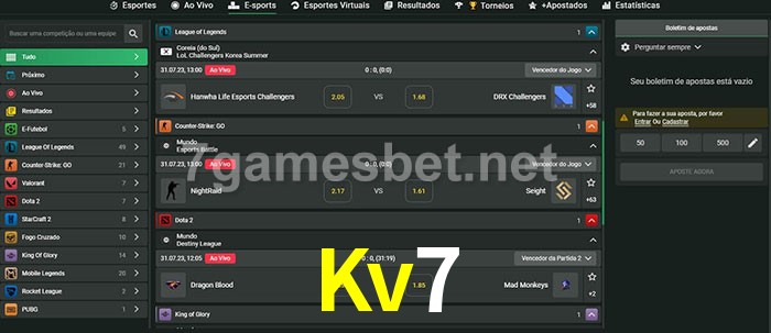 A aposta Kv7 oferece aos jogadores a experiência mais conveniente de apostas em eSports!
